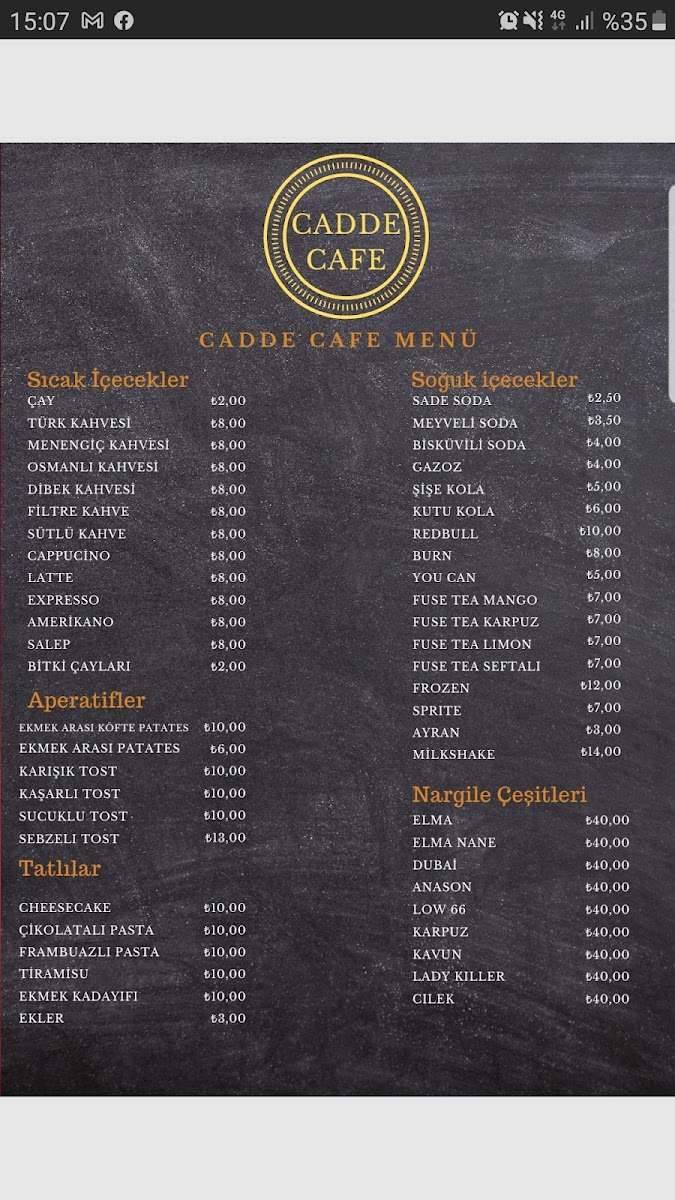 Cadde Cafe-Nargile Salonu Menu